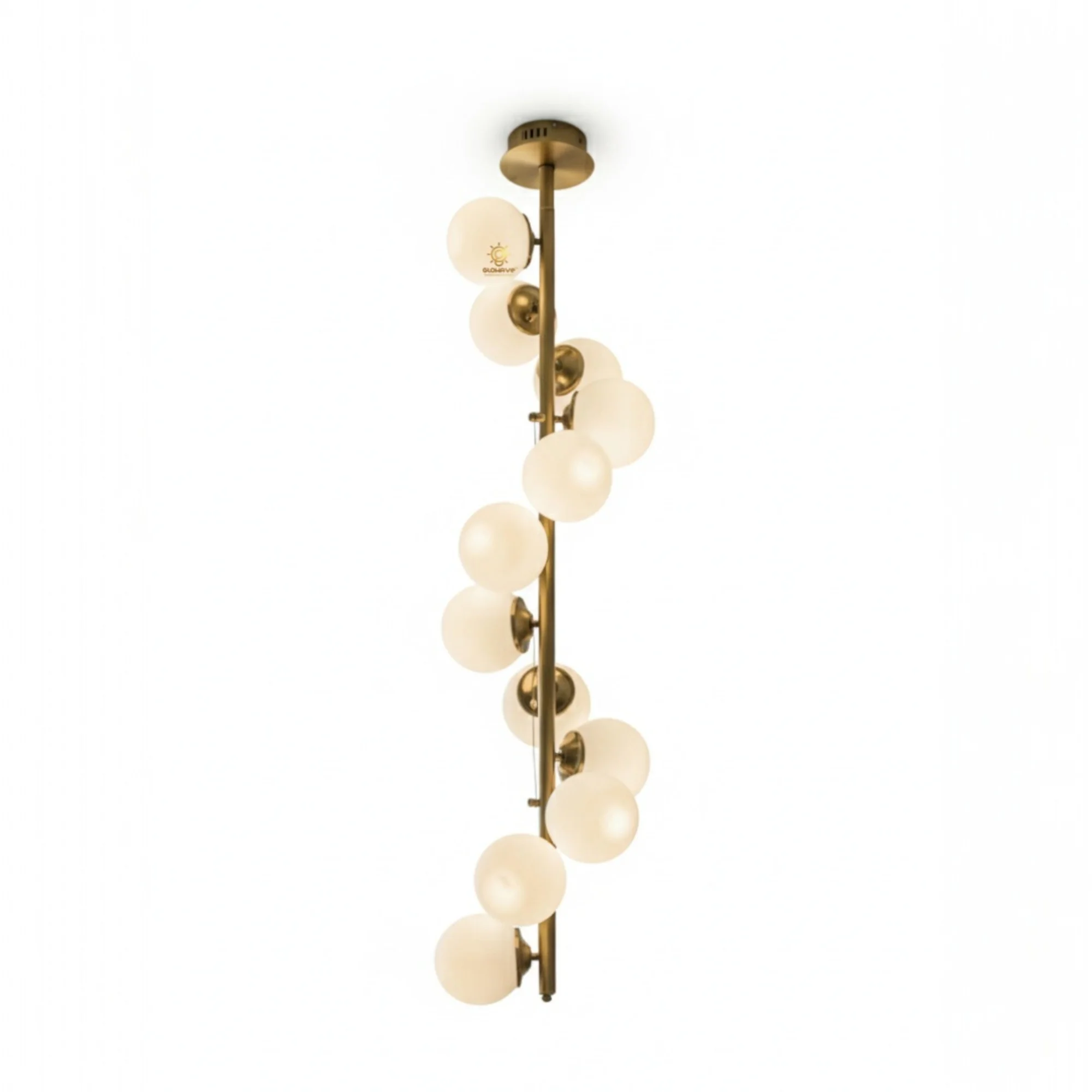 Golden 1200mm Long LED 12 Frosted Glass Balls Light Chandelier - Warm White