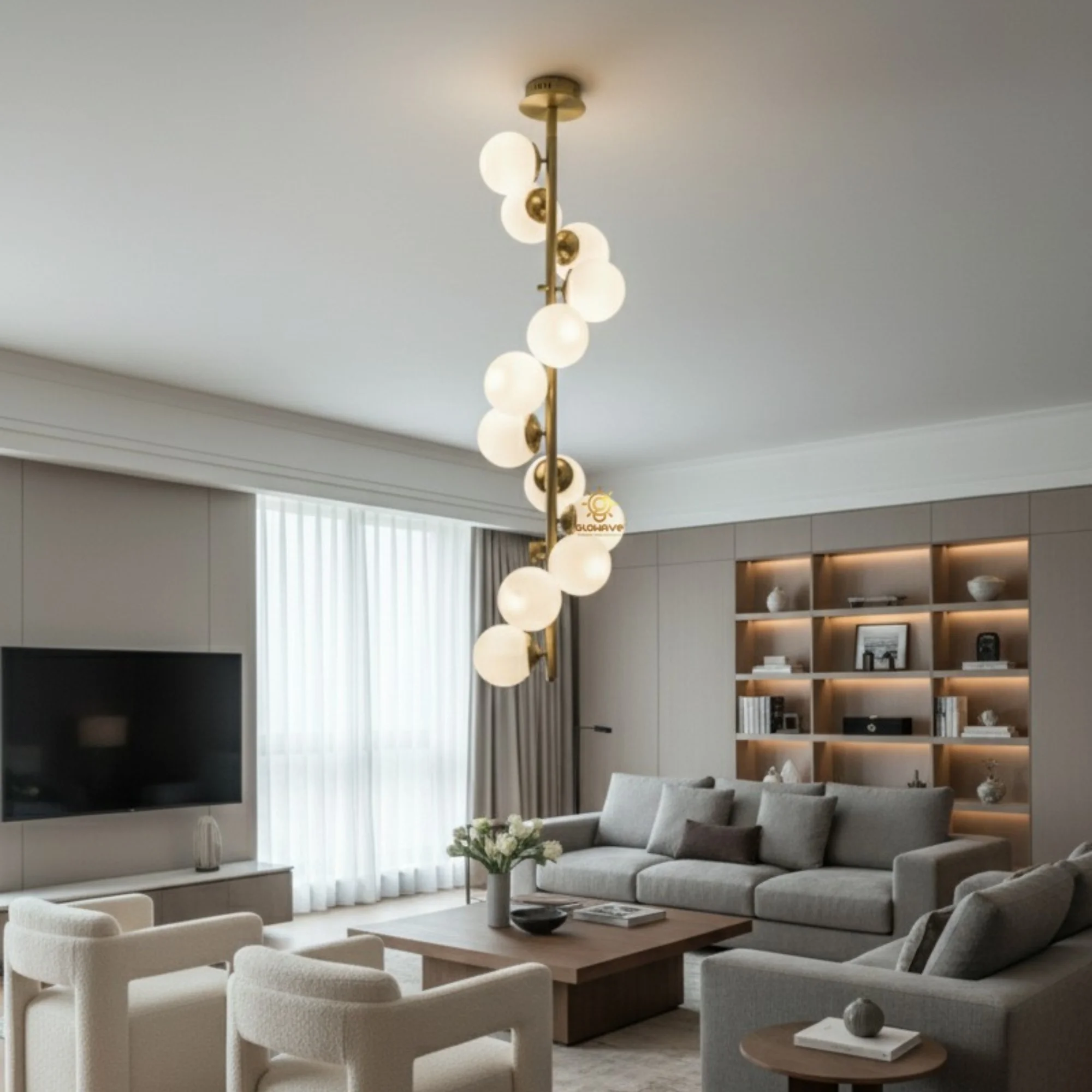 Enhance your decor with the Linear Shape Modern Acrylic 12 Ball Molecular Bubble Hanging Lamp. This contemporary lamp features a unique line-shaped design adorned with acrylic bubble balls, creating a warm, ambient glow perfect for any room. Its chic style makes it an elegant centerpiece for modern living spaces, dining areas, or upscale commercial environments. Crafted with high-quality materials for durability, the lamp’s molecular bubble design enhances light diffusion, offering a stunning play of light and shadow. Easy to install and maintain, it complements various interior styles, from minimalistic to eclectic. Illuminate your space with this stylish and sophisticated lighting solution.