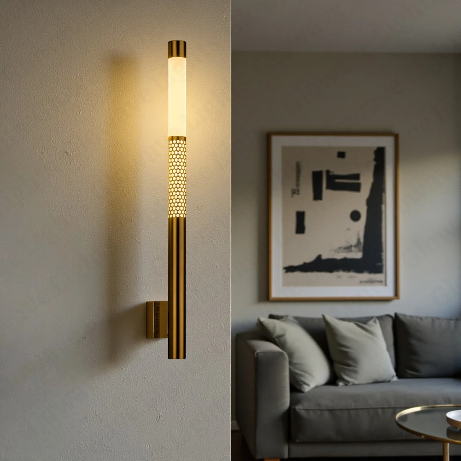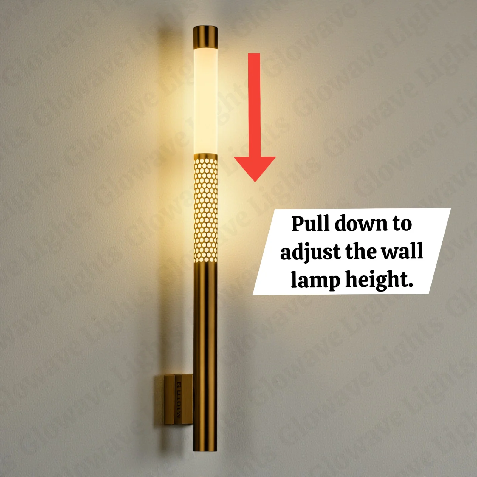 Golden 700mm Metal LED Long Tube Wall Light with Adjustable Height - Tricolour