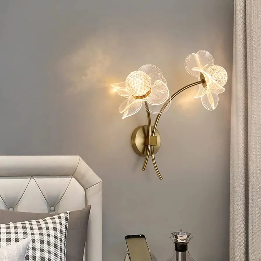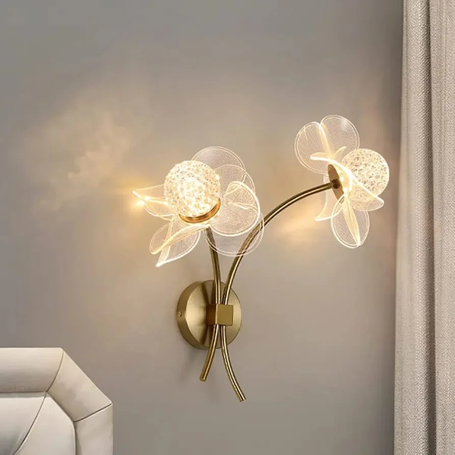 Golden Acrylic Flower Shape Wall Light - Tricolour
