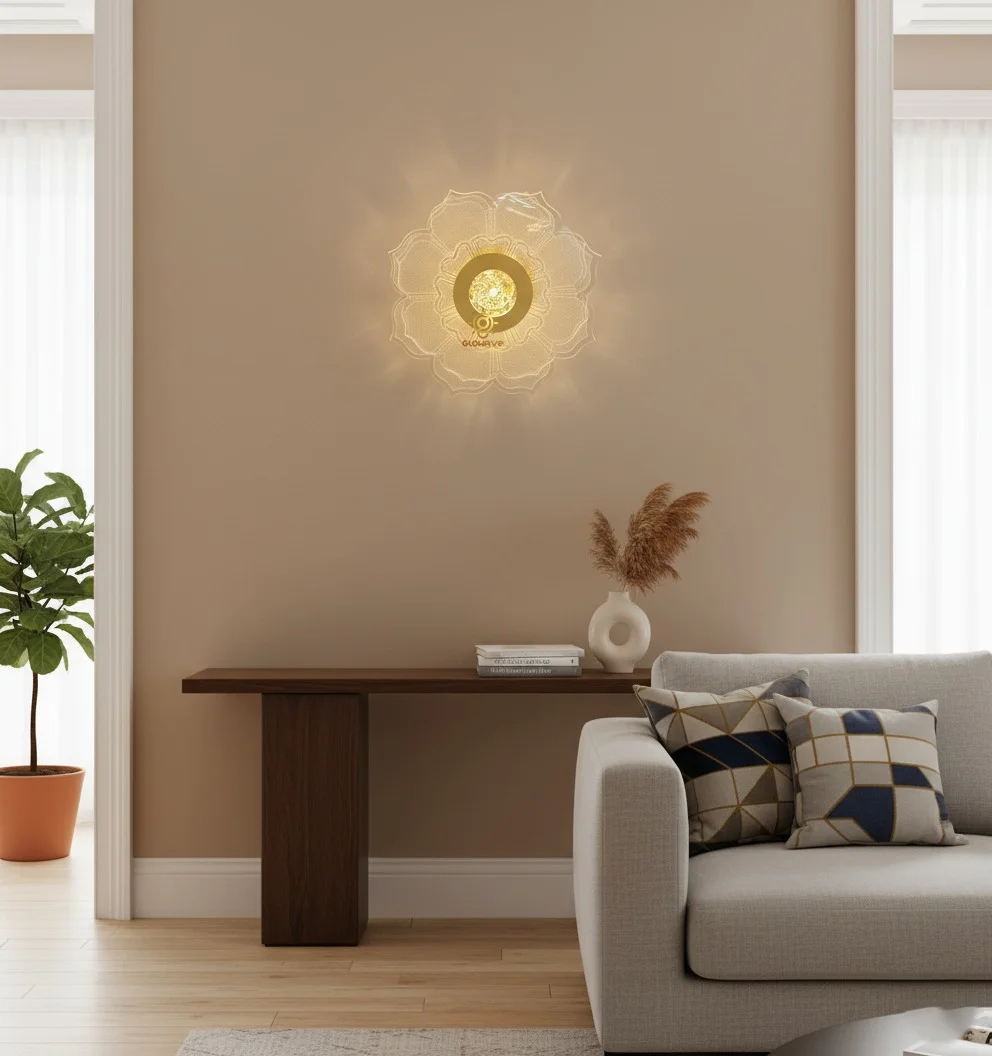 Golden Acrylic Light Round Flower Design Wall Lamp - Tricolour