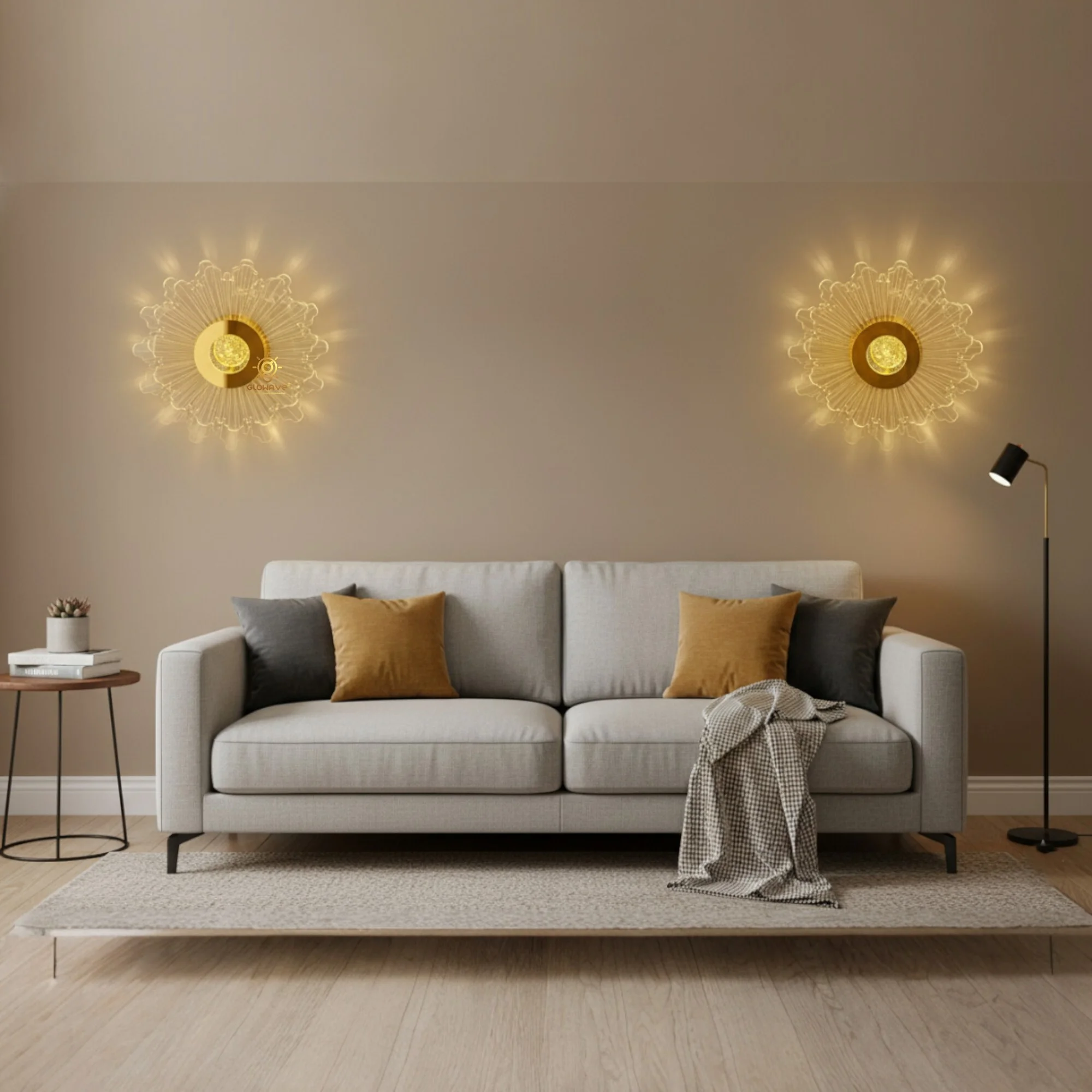 Golden Acrylic Light Round Flower Design Wall Lamp - Tricolour
