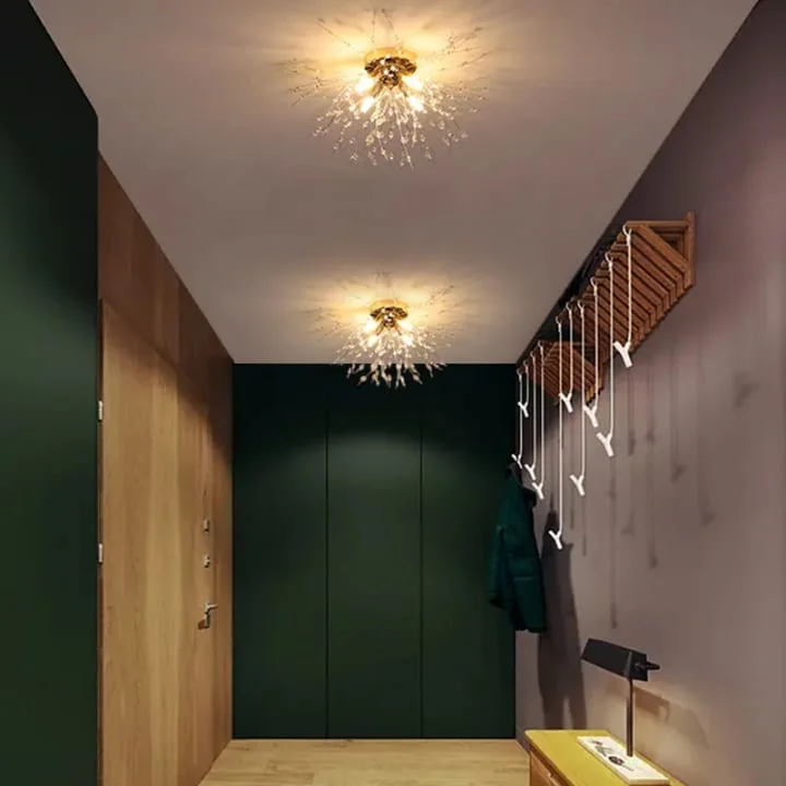 Golden Branch Crystal LED Oval Ceiling Lamp