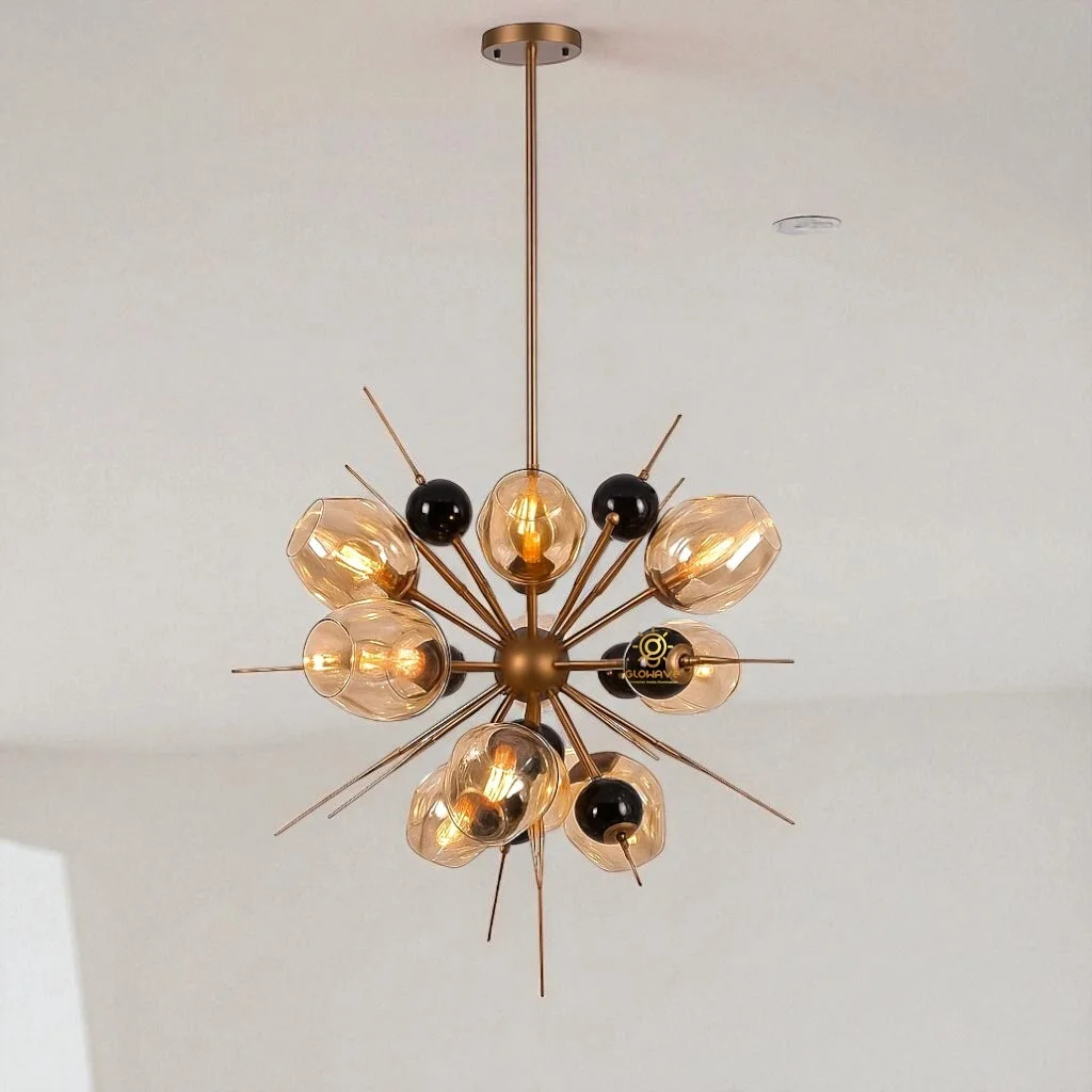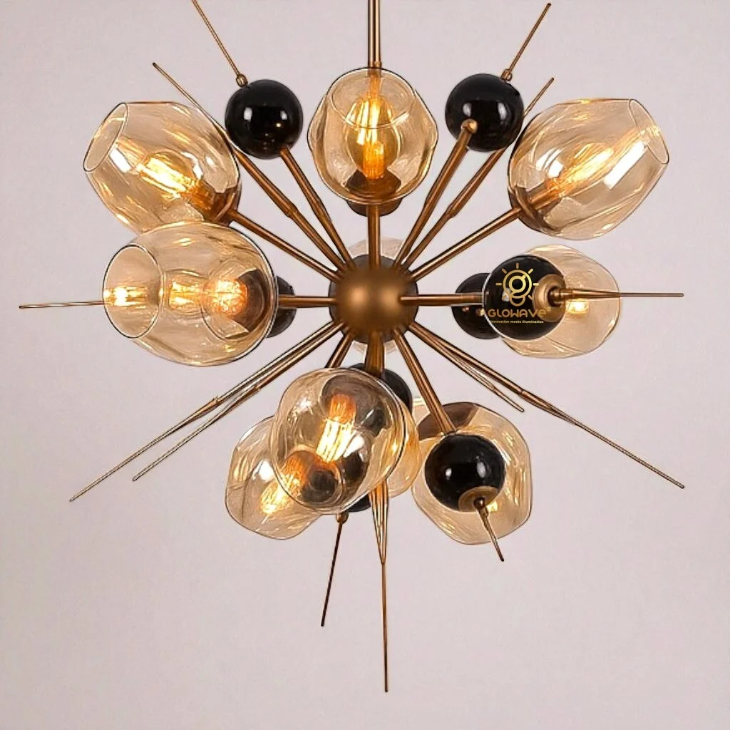 Elevate your interiors with the luxurious charm of our Modern Electroplated Golden Circular Pendant Chandelier. Designed with a sleek circular frame in a premium electroplated golden finish, it features 10 elegant Amber glass shades that exude sophistication and warmth. Perfect for kitchens, dining rooms, and modern living spaces, this chandelier delivers a cozy warm white glow that enhances the ambiance while making a bold style statement. Crafted with durability and elegance in mind, it’s the ideal lighting centerpiece for contemporary homes.