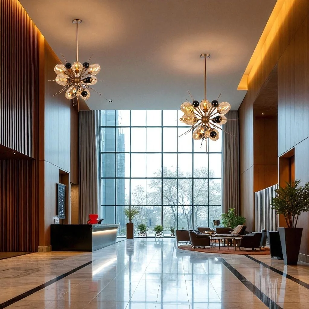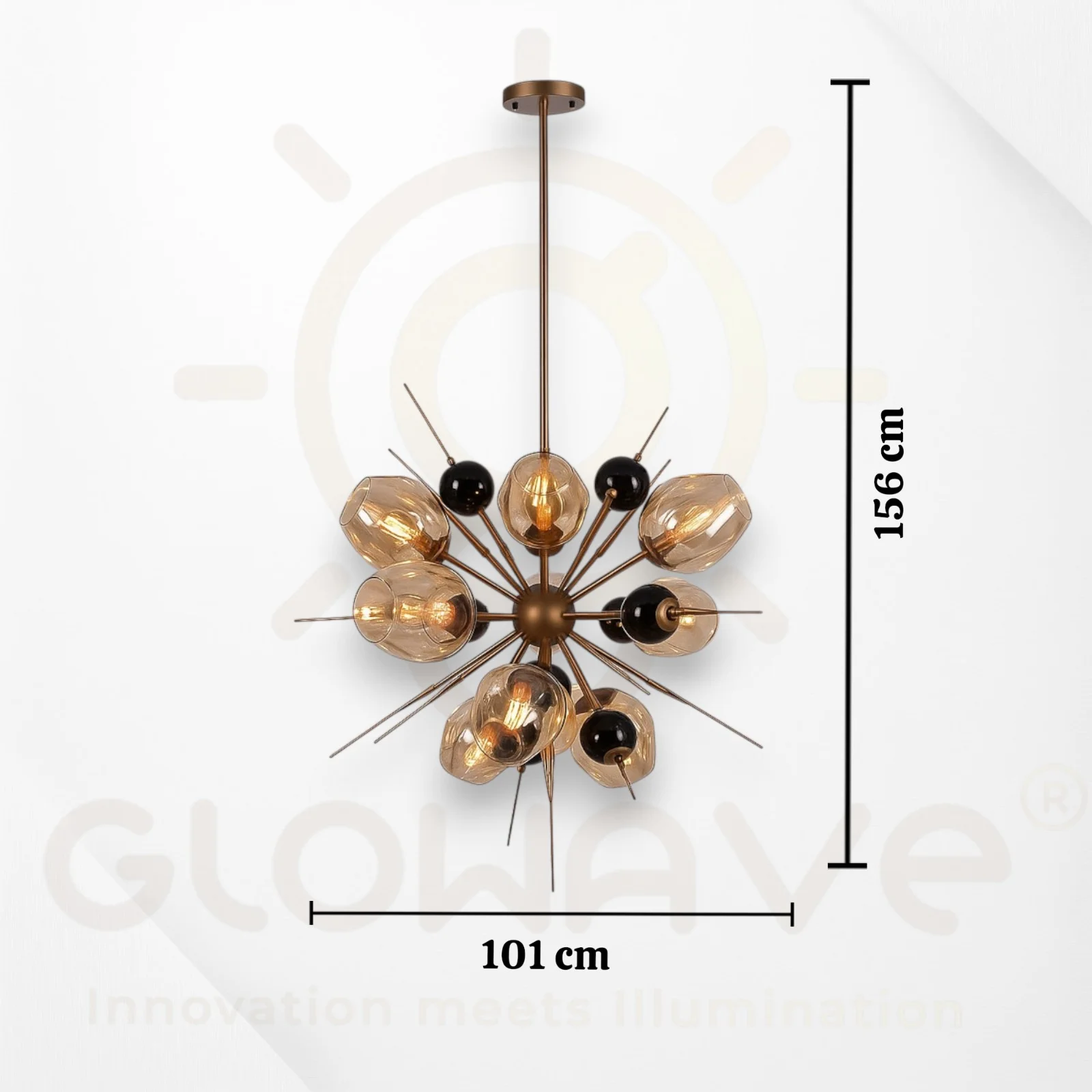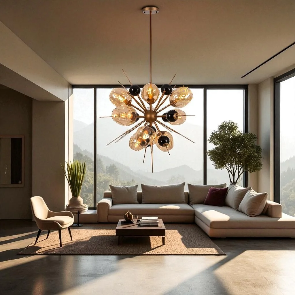 - Smoky Glass Shades – Softly diffuses light for a luxurious glow without glare.