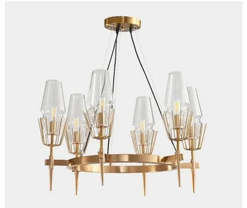 Golden Circular 6 Amber Glass Light Chandelier - Warm White (5777-6L)