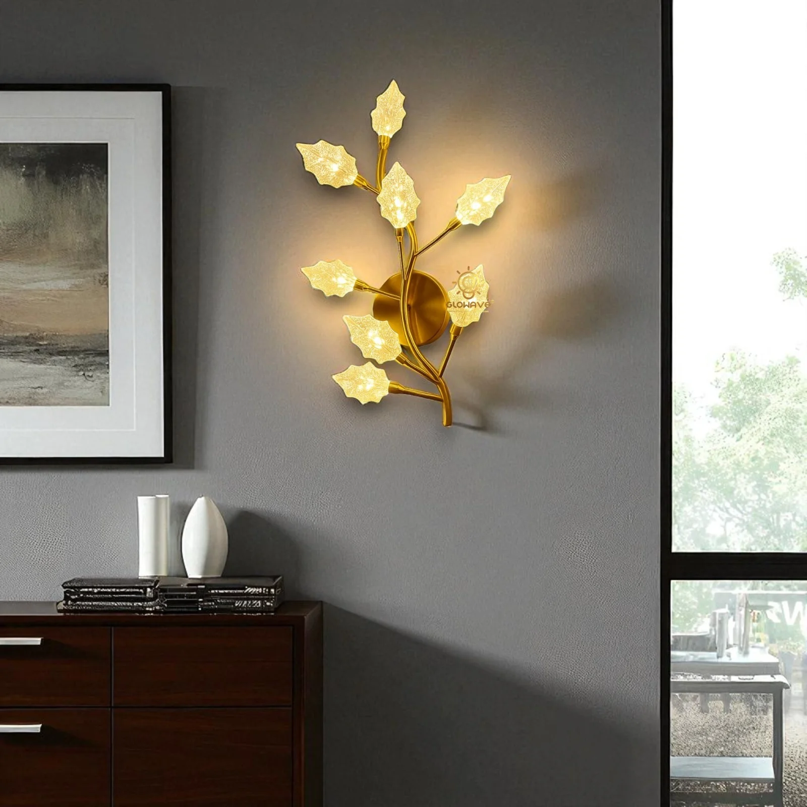 Elevate your living space with the Modern Golden Finish Flower Branch LED Wall Lamp. This elegant lighting fixture, perfect for your living room, bedroom, or bedside, features a sleek golden finish and contemporary oval design. It provides a warm white, White and natural white glow that creates a cozy ambiance.