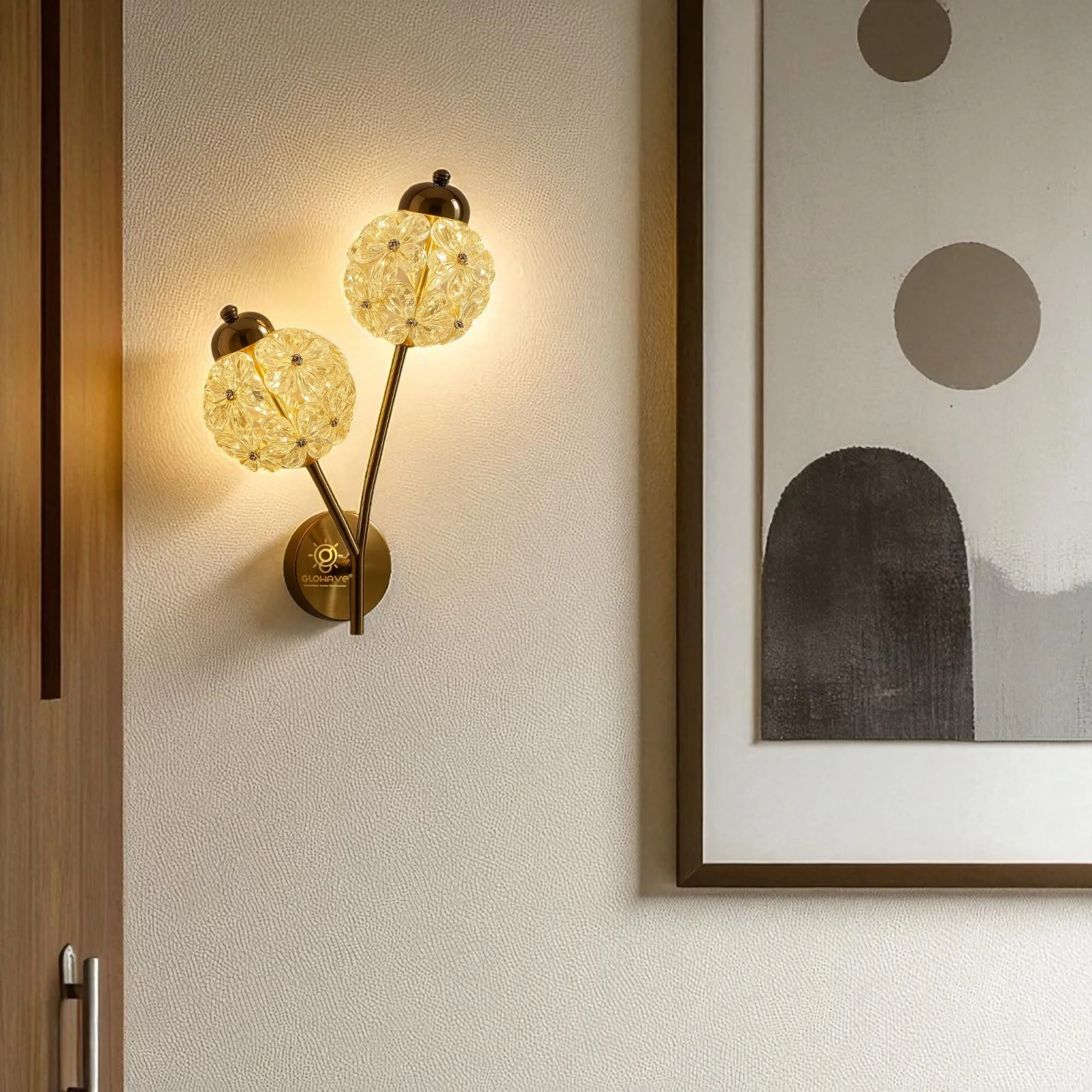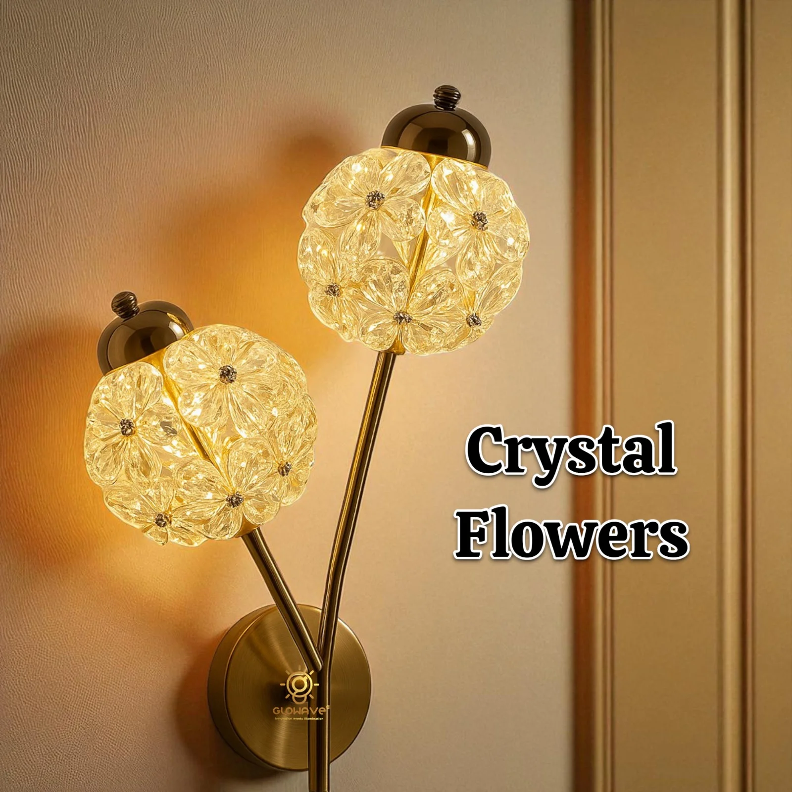 Golden Crystal Flower Wall Lamp - Tricolour (A-1285/2)