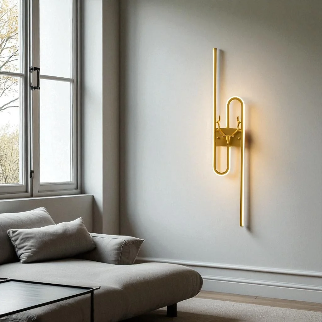 Golden Curl 600mm LED Long Tube Deer Head Wall Light - Tricolour (White, Warm White, Natural White) (2614 GAB)