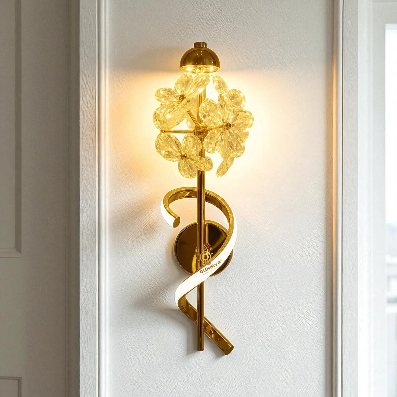 Golden Flower Crystal Lampshade Wall Lamp - Tricolour (A-1285/1W)