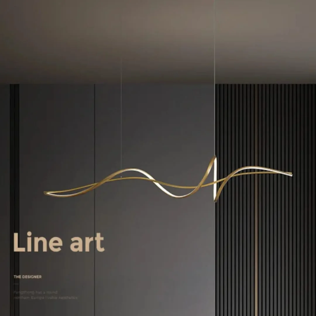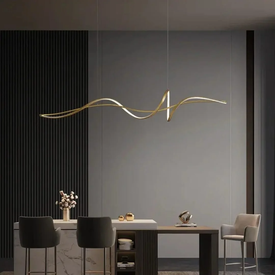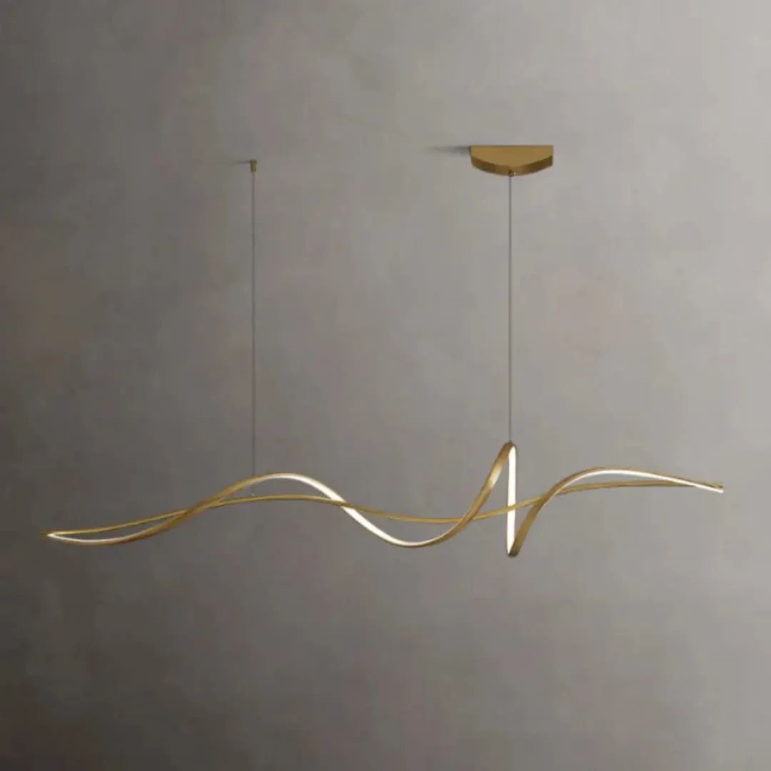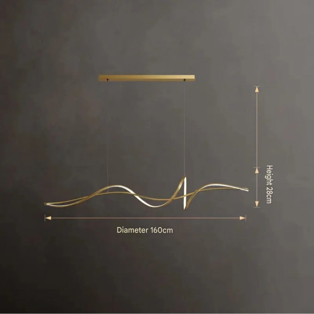 Golden LED Wavy Metal Profile Light Pendant Chandelier - Tricolour
