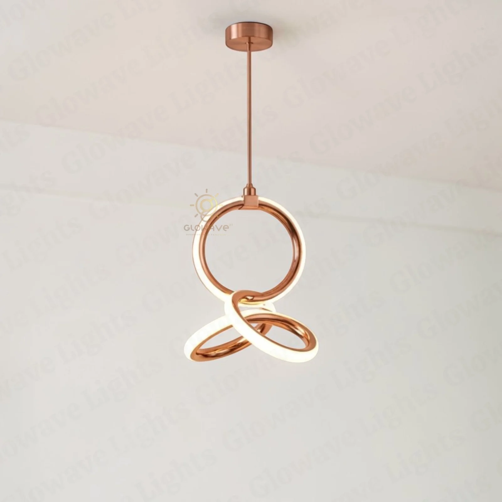 Add a unique artistic touch to your interior with this modern irregular shape LED pendant light, designed to create a bold and elegant statement in any space. Featuring three interlocking irregular rings with a luxurious rose gold finish, this designer hanging light blends modern aesthetics with functional lighting.