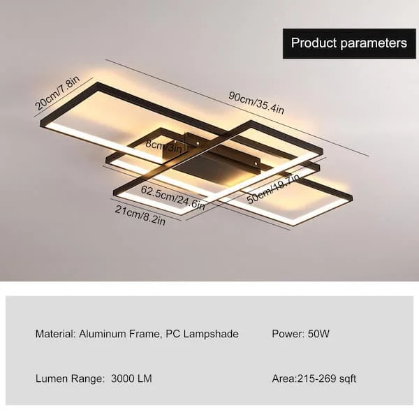 Transform your space with the stunning Rectangular LED Chandelier Pendant Light. This Rectangular design ceiling fixture features , creating a mesmerizing display perfect for bedrooms, kitchens, cafes, hotels, and dining bars. With tricolor options—warm white, white, and natural white—you can customize the ambiance to suit any mood or setting. Elevate your decor with this elegant and versatile chandelier.