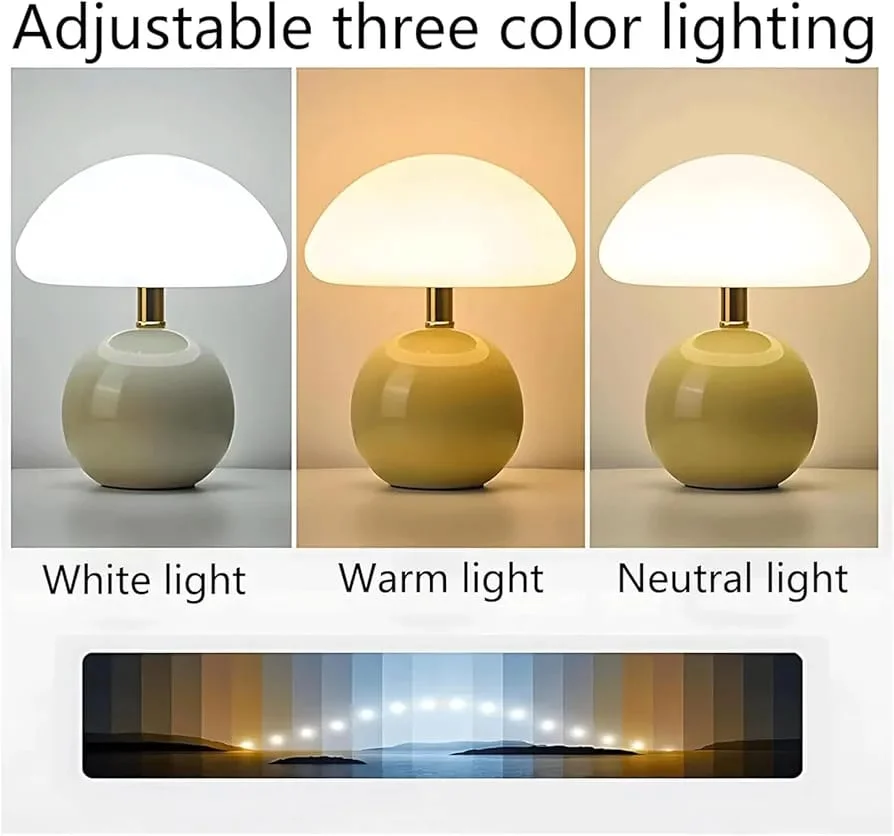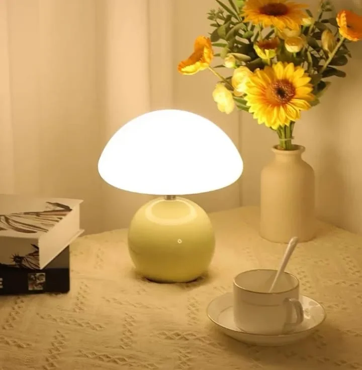 - Stylish glass base with mushroom dome shade