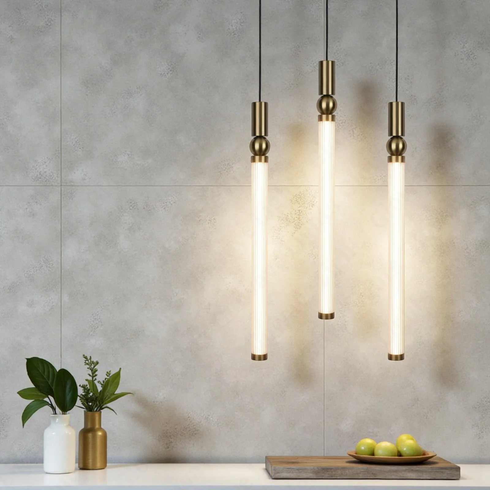Introducing the epitome of modern elegance: the 630mmLED Light Modern Brass Gold Cylinder Pendant Light. This stunning lighting fixture seamlessly combines contemporary design with energy-efficient LED technology to illuminate your space with sophistication and style. Crafted with precision and care, the pendant light features a sleek and slender cylindrical shape, adding a touch of understated luxury to any room. The brass gold finish not only enhances its aesthetic appeal but also brings a warm and inviting ambiance to your living space. Measuring 500mm in length, this pendant light is a versatile choice for various settings, from kitchen islands and dining areas to entryways and living rooms. The warm white LED light emitted by this fixture creates a cozy and welcoming atmosphere, making it ideal for both functional and decorative purposes. Designed with efficiency in mind, the LED technology ensures long-lasting and energy-saving performance, reducing your environmental footprint while providing a reliable and consistent glow. The pendant light is easy to install, allowing you to enjoy its radiant illumination in no time. Upgrade your home or office space with the 630mm LED Light Modern Brass Gold Cylinder Pendant Light and bask in the perfect blend of contemporary design and energy-efficient functionality. Elevate your interior décor with this exquisite lighting solution that effortlessly combines form and function. Illuminate your surroundings with a touch of modern brilliance that captivates and inspires.