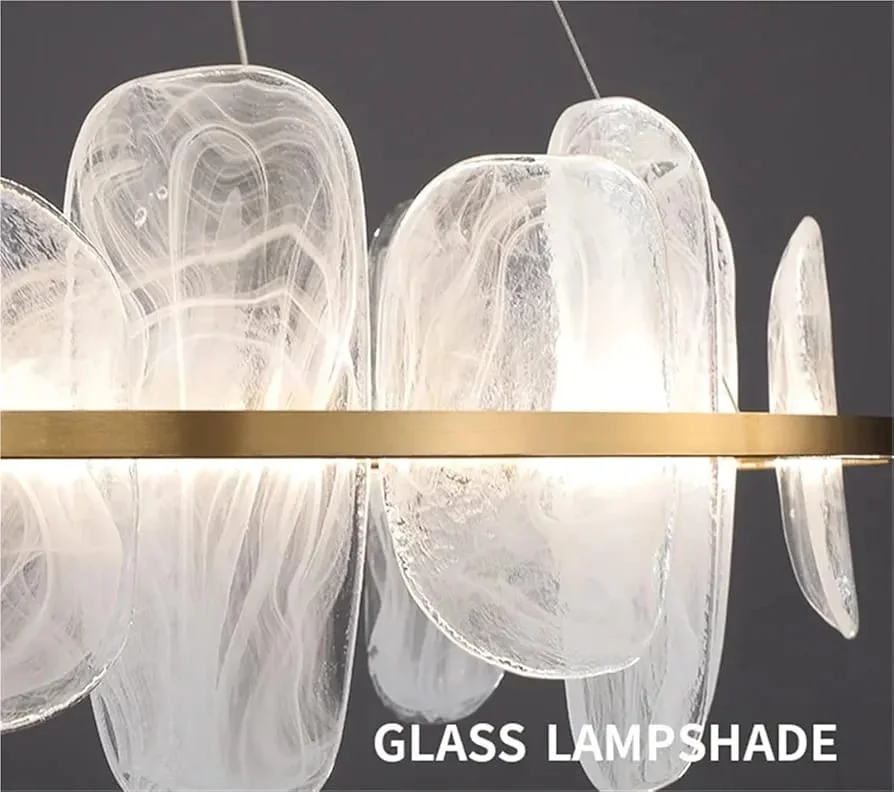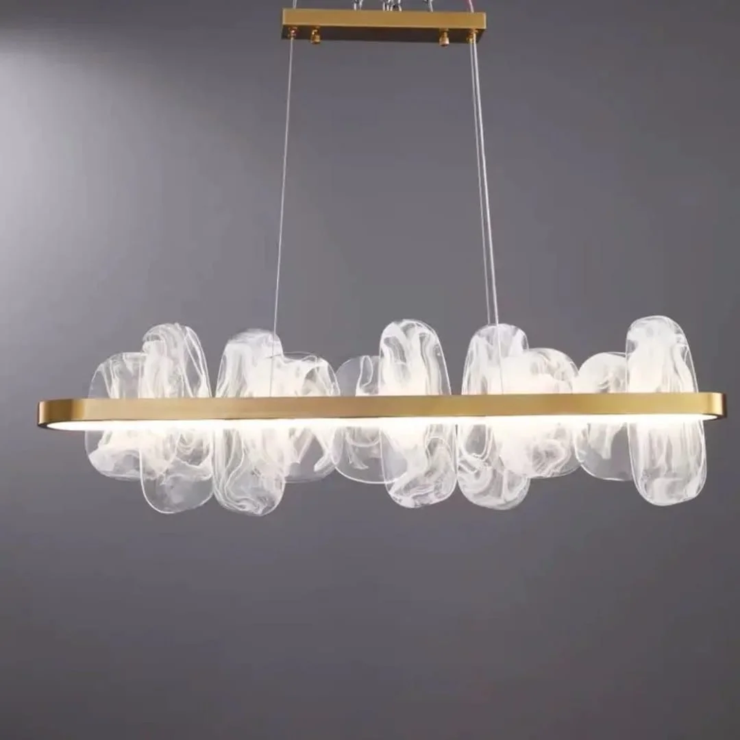Elevate your interior décor with the Glowave Modern Luxury Chandelier, featuring a striking gold-finish linear metal frame adorned with artistically sculpted glass elements. The flowing glass forms create a cloud-like visual effect while softly diffusing light to produce a warm, elegant ambiance. Designed for modern and high-end interiors, this chandelier is an ideal centerpiece for dining areas, living rooms, hotels, and upscale commercial spaces.