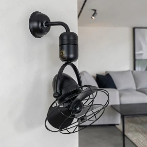 Industrial Matte Black Wall Mount Fan, 13-Inch Vintage Oscillating Cage Fan