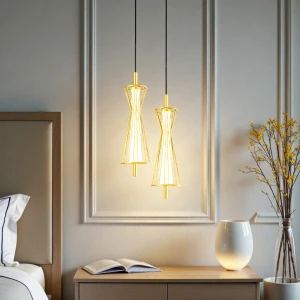 Vintage Metal Gold Brass Finish Amber Glass Pendant Hanging Lamp - Warm White