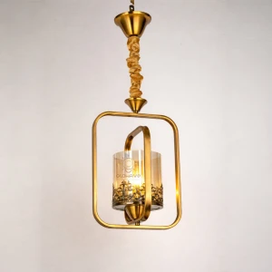 Gold Finish Metal Amber Glass Lantern Shape Pendant Lamp - Warm White