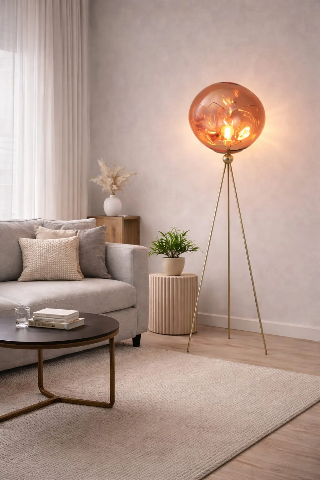 Modern Glass Globe Tripod Floor Lamp with Warm Ambient Light Red Glass Shade & Metal Stand Decorative Standing Lamp