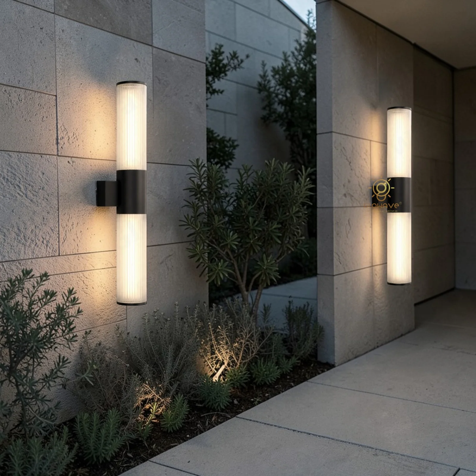 Enhance your outdoor spaces with this modern vertical LED wall light, designed to deliver both style and functionality. Featuring a sleek cylindrical tube design with a premium matte black finish, this wall sconce adds a contemporary touch to any exterior setting. The ribbed diffuser softly spreads warm white light, creating a welcoming and elegant ambiance for your home.