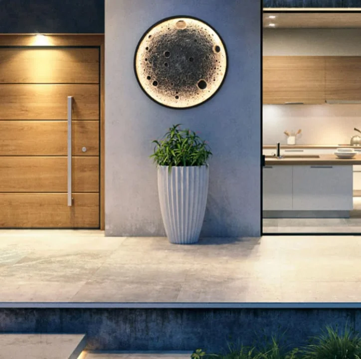 Introducing our Indoor/Outdoor Luxurious Resin Round Wall Lamp – a beacon of sophistication and functional elegance. Designed to seamlessly blend indoor and outdoor spaces, this exquisite wall lamp, known as the Moon, adds a touch of luxury to any environment. The high illumination ensures a perfect balance between brightness and energy efficiency, making it an ideal choice for both practical lighting and aesthetic enhancement. Whether installed indoors to elevate your interior decor or outdoors to accentuate your outdoor living spaces, the Black round Wall Lamp offers versatile functionality. Its understated yet impactful design contributes to the ambiance of any setting, creating a luxurious atmosphere. Illuminate your space with confidence, knowing that this wall lamp is designed for long-lasting performance. Upgrade your lighting experience with the Indoor/Outdoor Luxurious Round Wall Lamp – a perfect fusion of style and functionality. Illuminate your world with sophistication and let the Moon cast its luxurious glow on your indoor or outdoor environment. Elevate your space today.