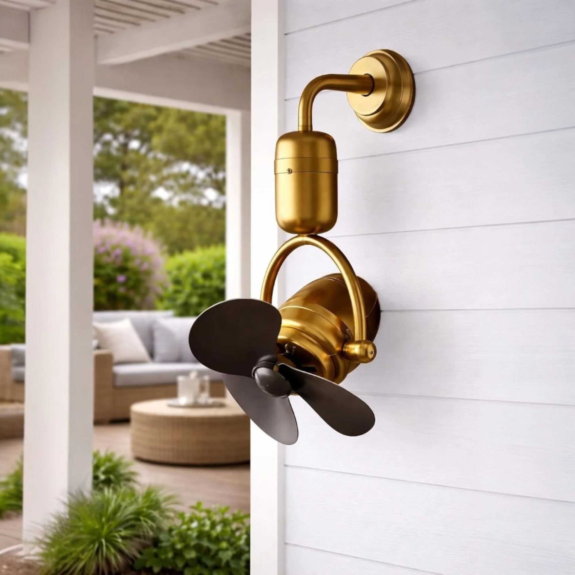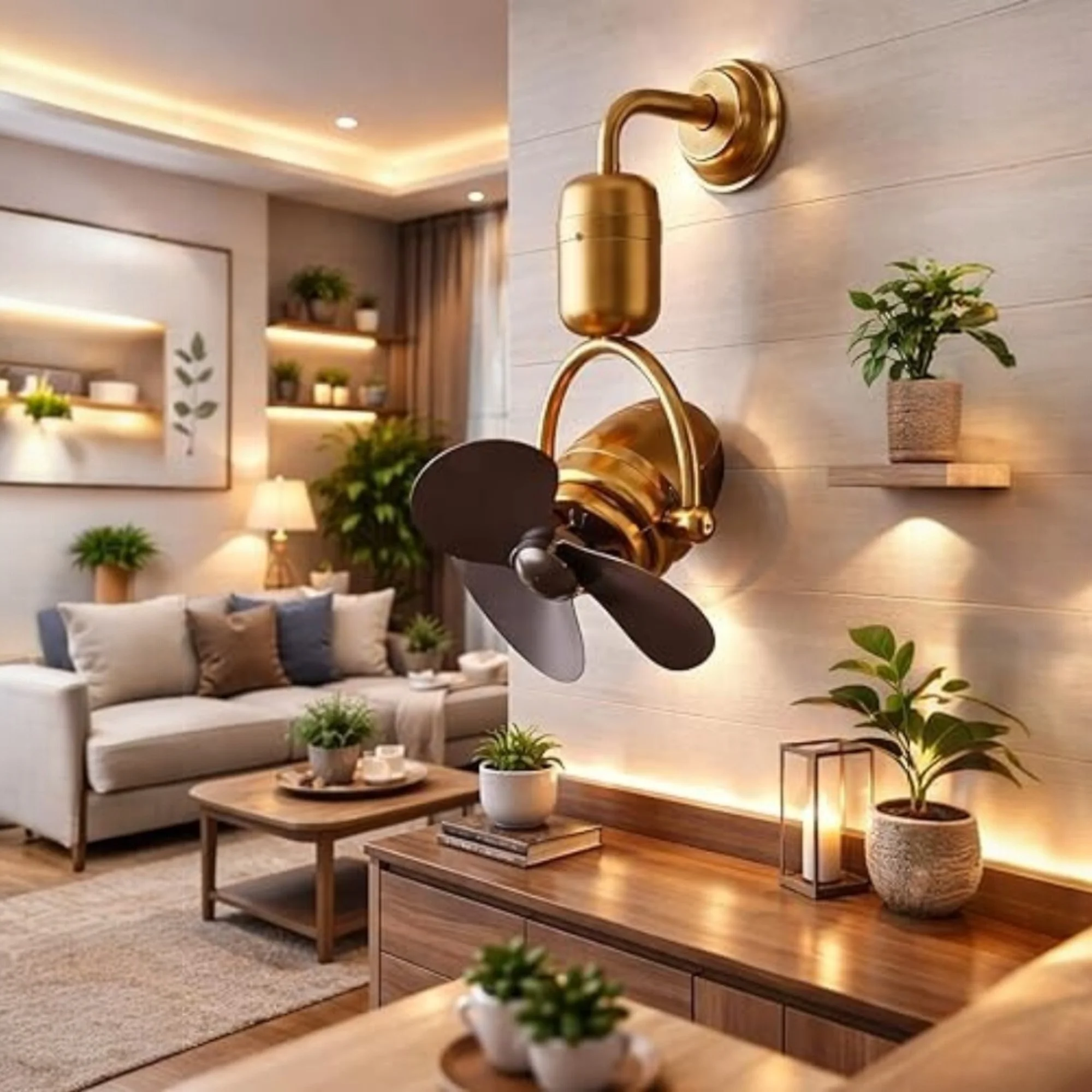 Premium Brass Wall Mounted Fan Metal Finish with 3-Blade Design Adjustable Tilt High-Speed Motor Silent Operation Wall Fan