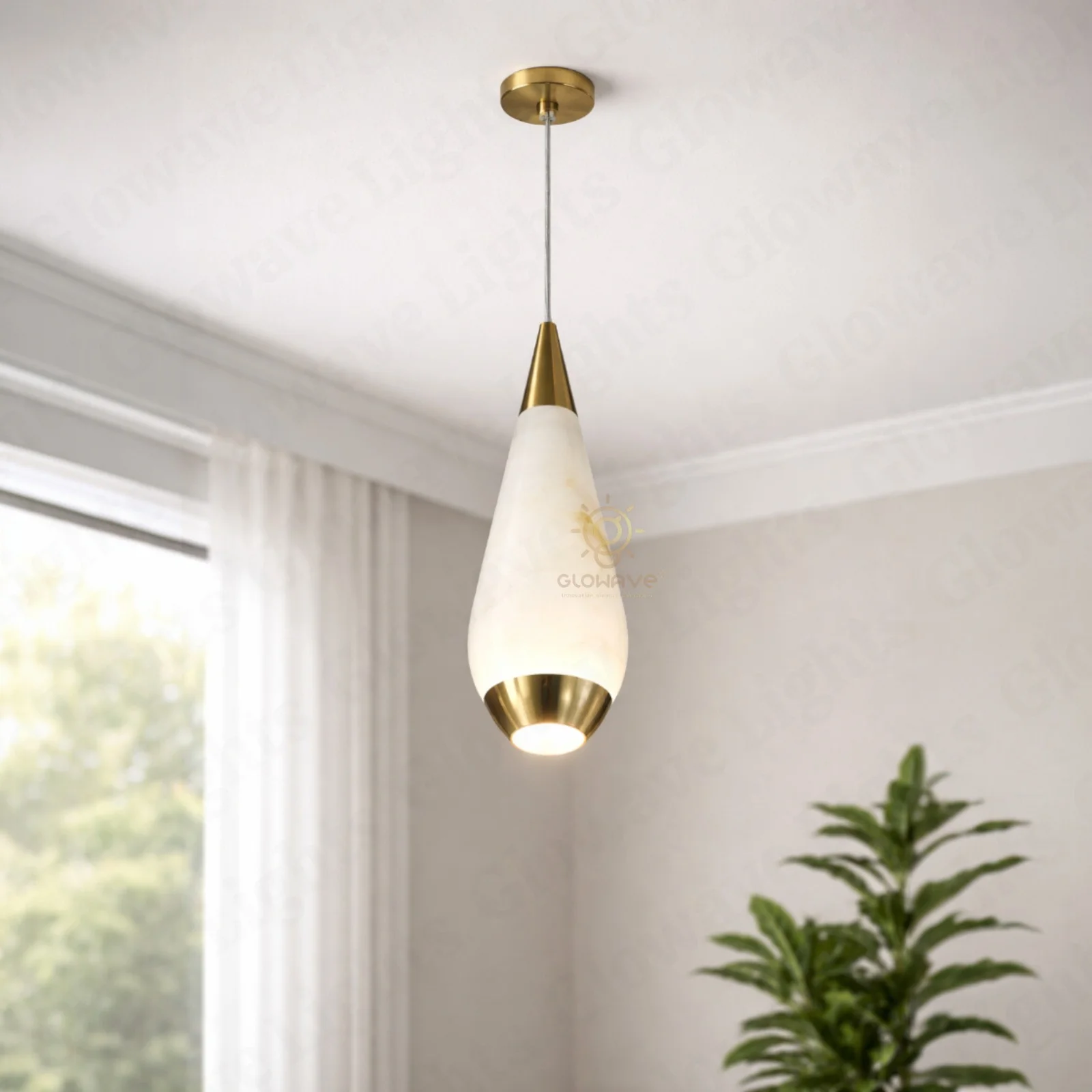 Premium White Marble Teardrop Ceiling Lamp with Bright LED Downlight - Tricolor