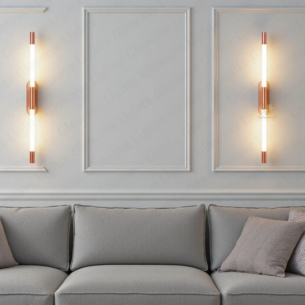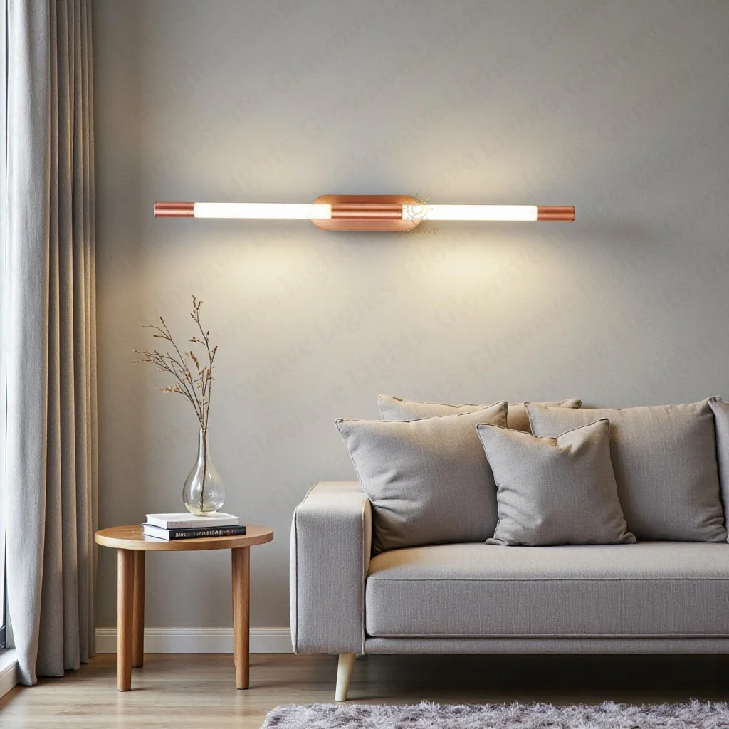 Rose Gold 600mm Metal LED Long Tube Wall Light - Warm White