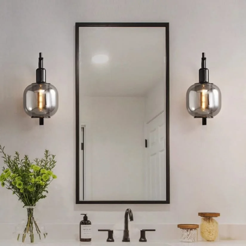 - Stylish Design: Smoky glass lampshade with a black finish metal body