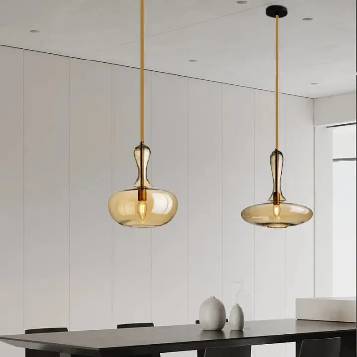 "Add brilliance to any space with our Amber Glass Pendant Light. This minimalist circular shape hanging light boasts a sophisticated design, perfect for bedrooms, kitchens, entryways, bathrooms, living rooms, lobbies, and restaurants alike. With its tricolor light feature, it offers versatile ambiance to suit any mood or occasion. Illuminate your space with elegance and style today!"