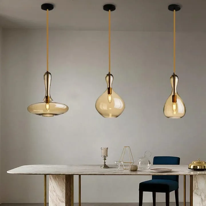 European Golden Smoky Glass Set of 3 Pendant Hanging Light - Warm White