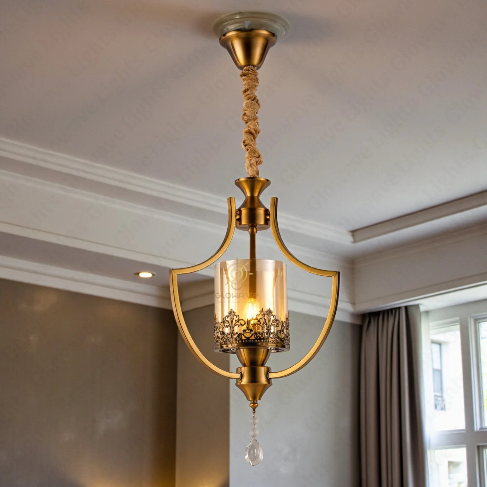 - Decorative Glass Shade: Clear cylindrical glass with intricate metal detailing