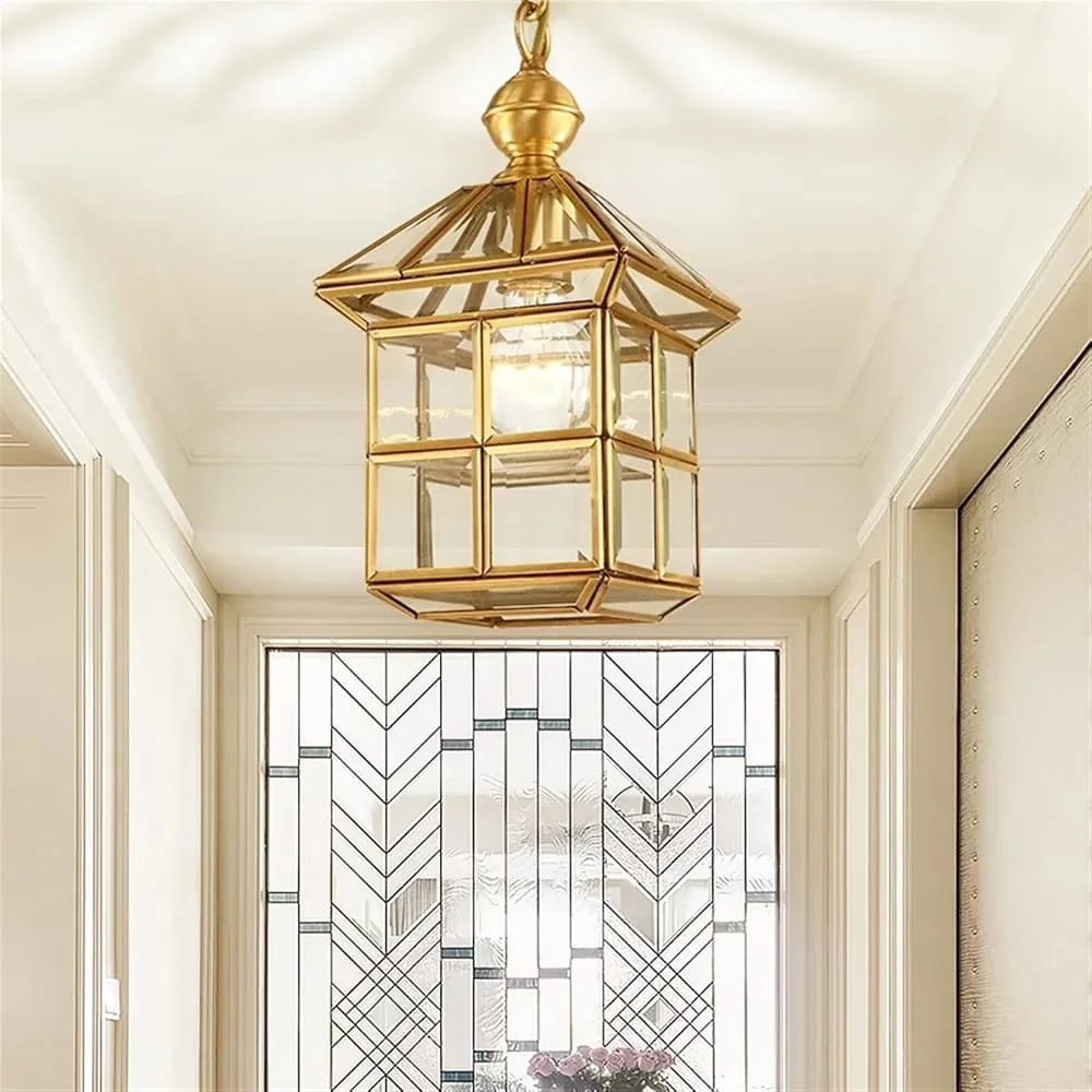 "Elevate your space with our Light Gold Brass Vintage Gold Glass Square Pendant Ceiling Light. Emitting a warm white glow, its timeless design adds charm to any room. Easy to install and durable, it's the perfect blend of vintage elegance and modern functionality."