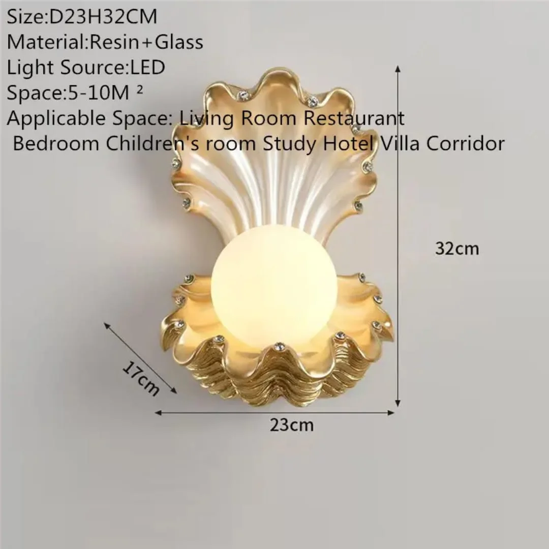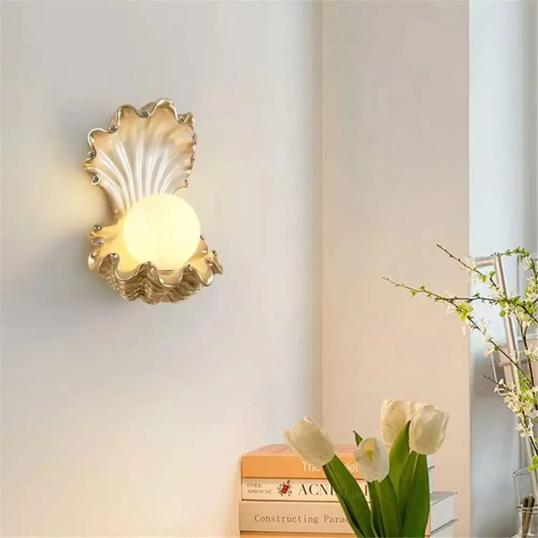 Illuminate your home with the timeless elegance of our White Golden Pearl Resin Sea Shell Light Wall Lamp. This retro lighting fixture, perfect for living rooms, bedrooms, and bedside decor, emits a warm white glow that creates a cozy and inviting atmosphere. Crafted with meticulous attention to detail, its unique design adds a touch of sophistication to any space. Enhance your home decor with this exquisite blend of tradition and modernity. Ideal for those who appreciate quality and style in their lighting choices